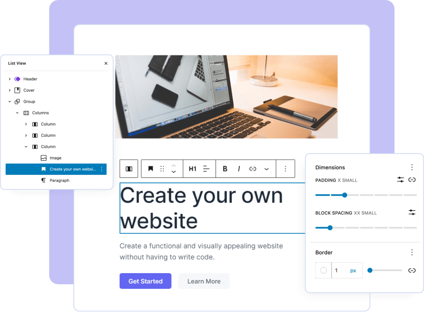 Kom snel online met de gebruiksvriendelijke Full site editing bouwer