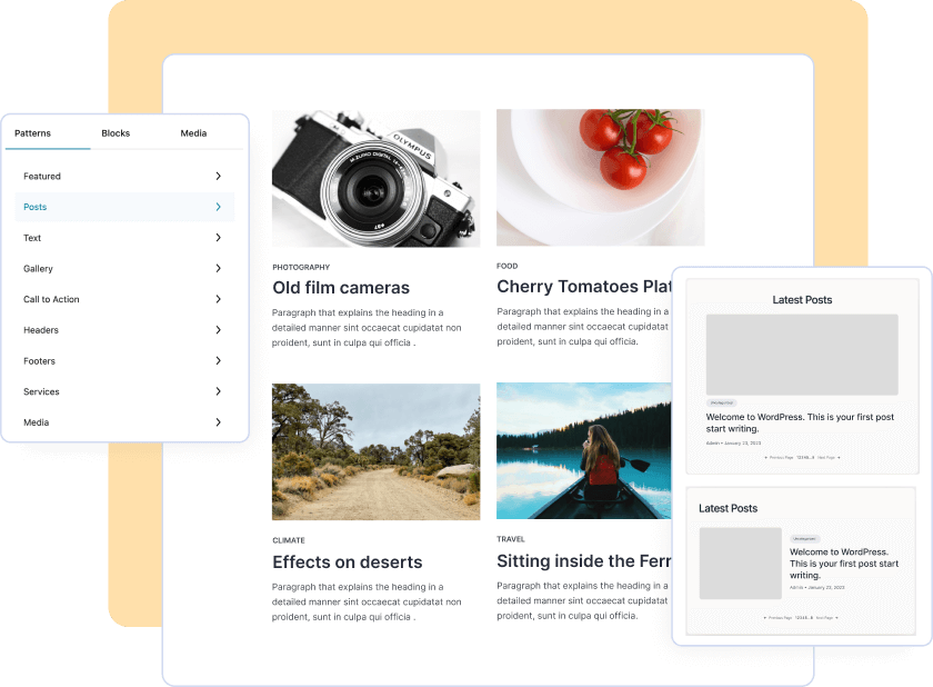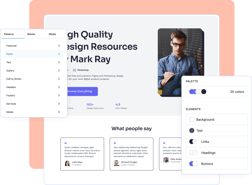 Blokpatronen zijn vooraf ontworpen blok lay-outs die we eenvoudig kunnen invoegen in onze inhoud. Deze patronen kunnen helpen om tijd te besparen en visueel aantrekkelijke ontwerpen te maken. Hiermee kunnen we aangepaste thema’s maken met behulp van het blok gebaseerde template.